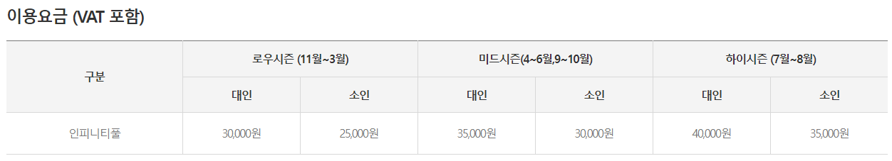 위에서 안내해드린 금액에 인피니티풀과 사우나가 포함되어 있다는 점이에요!